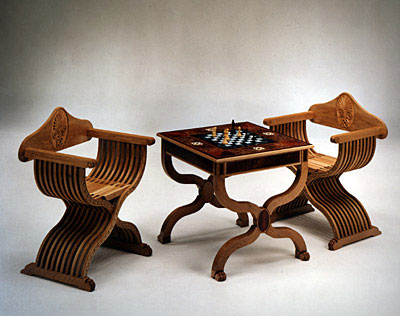 A chess table is a table built with features to make it useful for playing the game of chess. A chess board is usually integral to the table top and often two drawers are provided to hold the pieces when not in use. ... Read Article